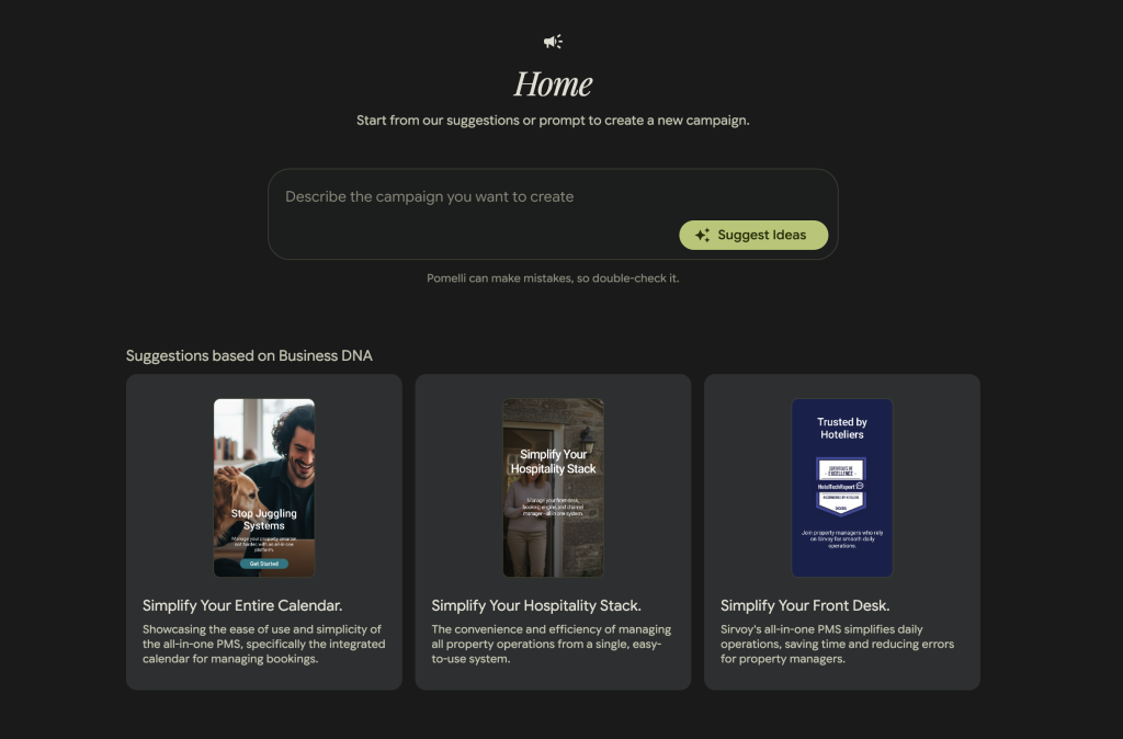 That way, your website becomes both the starting point and the destination. Pomelli uses it to create on-brand campaigns, then sends people straight back to your site to book directly.